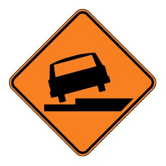 Le panneau « Présence d’une dénivellation » (T-140-G) indique la présence d’une dénivellation supérieure ou égale à 50 mm entre la chaussée et l’accotement, ou entre l’accotement et le terrain naturel ou entre deux voies.