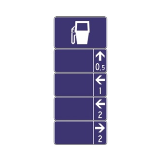 Le panneau « Acheminement » (I-570-1) indique l’itinéraire à suivre pour atteindre les établissements signalisés sur l’autoroute.