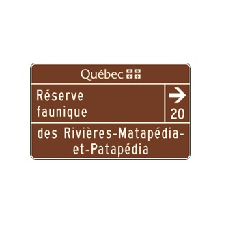 Le panneau de présignalisation de sortie « Réserve faunique » (I-460-1) indique la présence d’une réserve faunique qui a un statut de territoire faunique