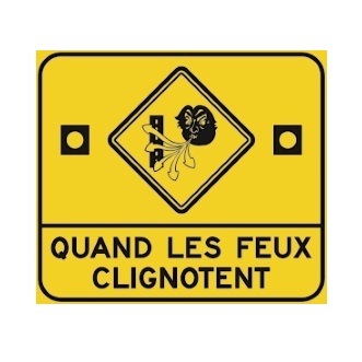 Le panneau « Bourrasque » (D-61-1) indique la présence d’une zone de vents violents sur un chemin public.