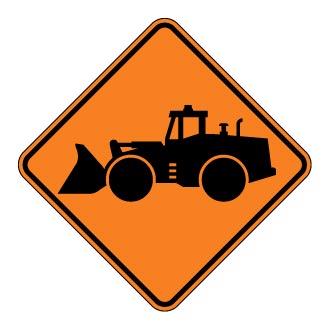 Le panneau « Chargeuse » (T-50-14) indique la présence d’une chargeuse effectuant des travaux sur une voie de circulation ou aux abords de celle-ci.