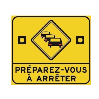Le panneau « Chaussée glissante » (D-61-4) indique que la chaussée peut être glissante. Il est installé lorsque la chaussée est fréquemment mouillée sur un tronçon de route, la rendant particulièrement glissante par endroits.