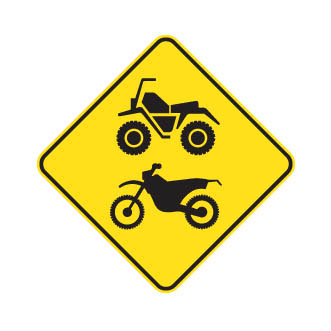 Les panneaux « Sentier de VHR désigné » (D-440-10) indiquent aux motoneigistes, aux motoquadistes et aux autres usagers qu’ils circulent sur un sentier de VHR désigné avec un autre type de véhicule.