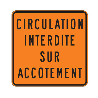 Le panneau « Circulation interdite sur accotement » (T-200-2) indique que la circulation temporaire sur l’accotement est interdite.