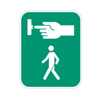 Les panneaux « Bouton d’appel de feux pour piétons » (I-395-1) indiquent aux piétons qu’il leur faut utiliser le bouton d’appel afin d’obtenir le feu qui les autorise à traverser ainsi que le sens du passage associé au bouton, le cas échéant.