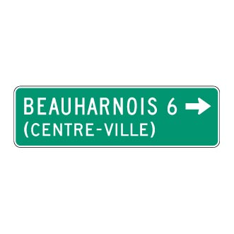 L’inscription « CENTRE-VILLE » peut être ajoutée au nom de la destination, s’il y a lieu. Elle est toujours écrite en majuscules, entre parenthèses, sous le nom de l’agglomération.