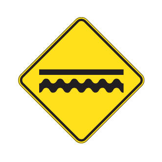 Le panneau « Étendue d’eau gelée » (D-510) indique la présence d’une étendue d’eau recouverte d’une mince couche de glace.