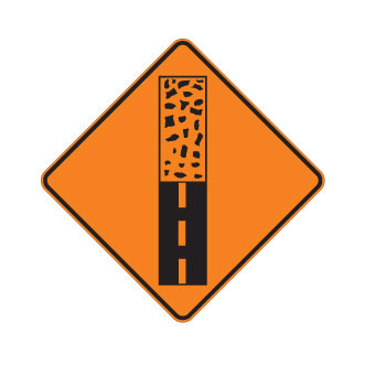 Le panneau « Fin du revêtement » (T-D-350) indique l’approche de la fin d’une chaussée avec revêtement et le commencement d’une autre en gravier ou en terre.