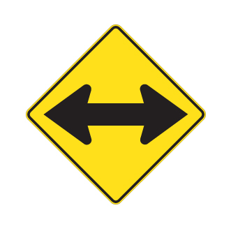 Le panneau « Flèche directionnelle » (D-130-2) indique la présence d’un point particulièrement dangereux dans une intersection en forme de T.