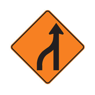 Le panneau « Fusion de voies » (T-100-1-D) indique, qu’une des voies de circulation est temporairement fermée en raison de travaux et qu’il y a lieu d’emprunter celle demeurée ouverte à la circulation.