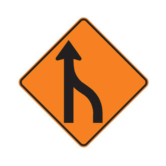 Le panneau « Fusion de voies » (T-100-1-G) indique, qu’une des voies de circulation est temporairement fermée en raison de travaux et qu’il y a lieu d’emprunter celle demeurée ouverte à la circulation.