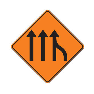 Le panneau « Fusion de voies » (T-100-4-G) indique, qu’une des voies de circulation est temporairement fermée en raison de travaux et qu’il y a lieu d’emprunter celles demeurées ouvertes à la circulation.