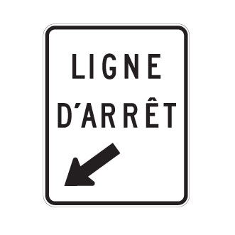 Le panneau « Ligne d’arrêt » (P-60) indique l’emplacement d’une ligne d’arrêt marquée sur la chaussée où les véhicules doivent s’arrêter.