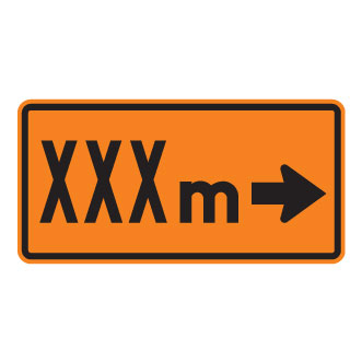 Le panonceau de distance et de direction (T-240-P-14-D), fixé au-dessous du panneau «Zone de travaux» (T-50-1), indique l’endroit où ont lieu les travaux ainsi que la distance pour les atteindre lorsqu’ils sont réalisés à proximité d’une intersection.