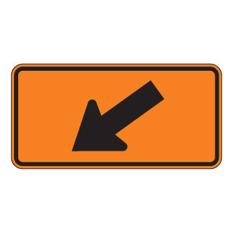 Le panonceau d’emplacement (T-240-P-10-D), qui est utilisé avec les panneaux de passage appropriés, indique l’endroit où est situé un passage aménagé dans une zone de travaux. Le panonceau doit être installé sous le panneau de travaux qu’il complète.