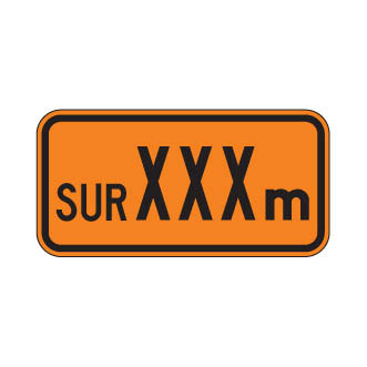 Les panonceaux d’étendue de danger (T-250-P-2) indiquent le début d’une zone où il y a un danger potentiel ainsi que la distance sur laquelle elle s’étend. Les panonceaux d’étendu doivent être installés sous les panneaux de danger qu’ils complètent.