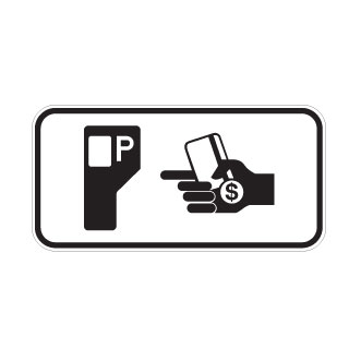 Le panonceau P-150-P-2 doit toujours être installé sous le panneau P-150-9 pour indiquer l’endroit où se situe l’horodateur de façon à ce que l’usager de la route puisse payer lorsque la zone de stationnement est tarifée.