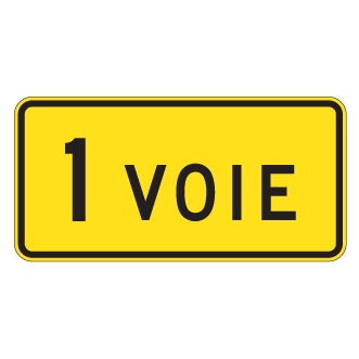 Le panonceau « 1 voie » (D-200-P-2) doit être fixé au-dessous du panneau « Passage étroit » (D-200) lorsque la largeur carrossable est inférieure à 6 m.