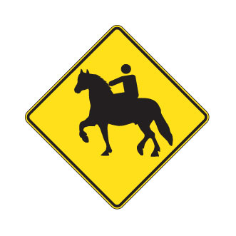 Le panneau « Passage pour cavaliers » (D-270-12) indique la présence d’un passage pour cavaliers. Le panneau installé au début de la piste doit être accompagné du panonceau D-250-P-3 ou D-250-P-4 et celui à la fin de la piste, du panonceau D-230-P.