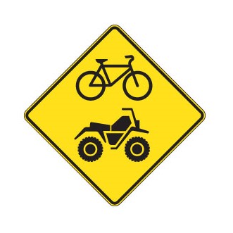 Les panneaux « Passage pour sentier polyvalent » (D-270-19-G) indiquent la présence d’un passage pour plusieurs types d’usage, dont les bicyclettes, la motoneige, la motoquad et l’équitation.
