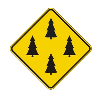 Le panneau « Plantation d’arbres » (D-520) indique la présence de jeunes arbres aux abords du sentier de VHR.