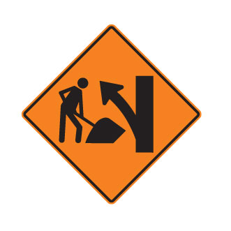 Lorsque les travaux sont réalisés dans une bretelle de sortie ou aux abords de celle-ci, le panneau T-50-11 doit être installé. Le panneau T-50-11-G doit être utilisé pour les bretelles de sortie à gauche.