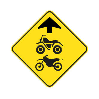 Les panneaux « Signal avancé de chaussée ou de sentier de VHR désigné » (D-430-10) indiquent, à l’avance, la présence d’une chaussée ou d’un sentier de VHR désigné.