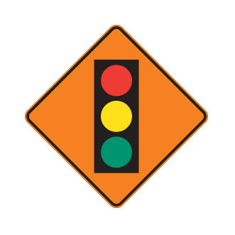 Le panneau « Signal avancé de feux de circulation » (T-D-50-1) indique, à l’avance, la proximité de feux réglant la circulation à une intersection.