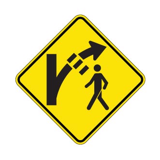 Le panneau « Signal avancé de passage pour piétons dans un îlot déviateur » (D-270-29) indique, à l’avance à partir de la route principale, la présence d’un passage pour piétons dans une voie de virage munie d’un îlot déviateur.