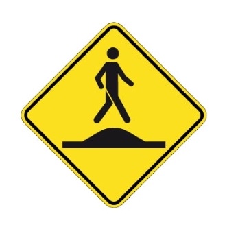 Le panneau « Signal avancé d’un passage pour piétons sur un dos d’âne allongé » (D-270-33-G) indique à l’avance la présence d’un passage pour piétons lorsque le passage pour piétons est situé sur un dos d’âne allongé ou un carrefour surélevé.