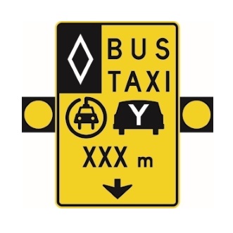 Le panneau « Signal avancé de voie réservée » (D-250-1-A) indique, à l’avance, l’existence d’une voie réservée à certaines catégories de véhicules. Le panneau D-250-1-A doit être installé au-dessus des voies.