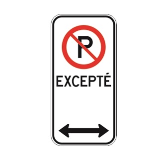 Stationnement réglementé vers la gauche et vers la droite (Excepté)