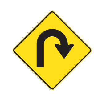 Les panneaux « Virages » (D-110) indiquent la proximité d’une ou de plusieurs courbes sur un chemin public. Le panneau D-110-6-D indique un virage à 180 degrés vers la droite.