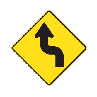 Les panneaux « Virages » (D-110) indiquent la proximité d’une ou de plusieurs courbes sur un chemin public. Le panneau D-110-3-G indique un virage double débutant vers la gauche.