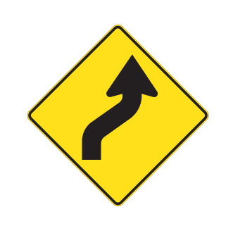 Les panneaux « Virages » (D-110) indiquent la proximité d’une ou de plusieurs courbes sur un chemin public. Le panneau D-110-4-D indique un virage double débutant vers la droite.